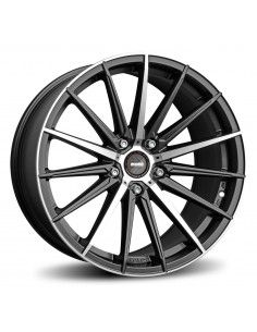 RF05:Radicale. La jante MOMO RF-05, couleur Graphite polie hyper Hi-Tech, 15 branches aiguisées comme des couperets. Cette jante semi forgée est disponible du 8.5 au 9.5 en 19 pouces.
