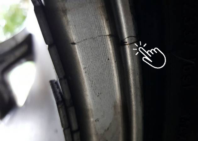 Trouvé sur un forum, un client cherche un réparateur de jante suite à une baisse de pression. La jante est fissurée sur l'arrière.
